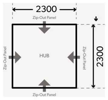 Passen Sie den HUB an Ihre Bedürfnisse an. Beginnen Sie mit dem Pavillon und fügen Sie einen Anbau, Netzelemente, Wandelemente und Anschlussschleusen für Kombis, SUVs und Wohnmobile hinzu. Die Luftrahmentechnologie mit Einzelpunkt-Aufblasung und QuickPitch-Gurten sorgt dafür, dass Sie in kürzester Zeit die freie Natur genießen können.