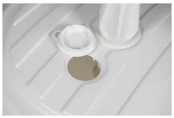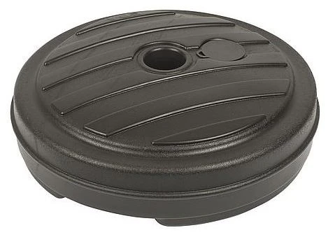 Ein stabiler Sonnenschirmfuß. Der Sonnenschirmfuß kann mit Wasser oder Sand gefüllt werden um zu verhindern, dass der Sonnenschirm umweht. Dieser runde Sonnenschirmfuß ist für Sonnenschirmstiele von 18 bis 32 mm geeignet.
