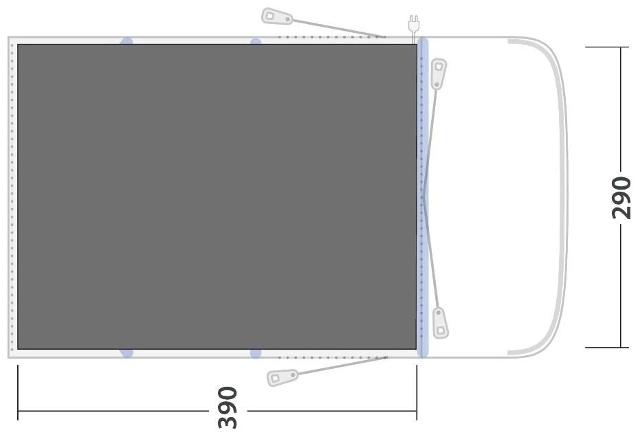 Dieser praktische Fußabdruck hält den Zeltfußboden sauber und schützt ihn vor Abrieb und Beschädigung. Es bietet auch eine Isolierung gegen den kalten Boden. Der Fußabdruck sollte vollständig vom Zelt bedeckt sein, um zu verhindern, dass Regen unter den Boden geleitet wird.