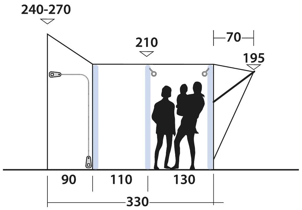 The inflatable Outwell Newburg 240 Tall drive-away awning is easily and quickly attached to either side of your campervan. Its ideal for friends, couples seeking extra space and families with growing children wanting privacy. The tunnel tent has a side door, backed by insect-proof mesh screen, plus theres a door on each side of the Link Access Zone connecting it to your van.